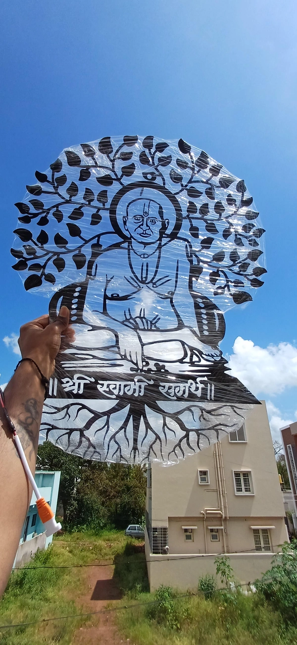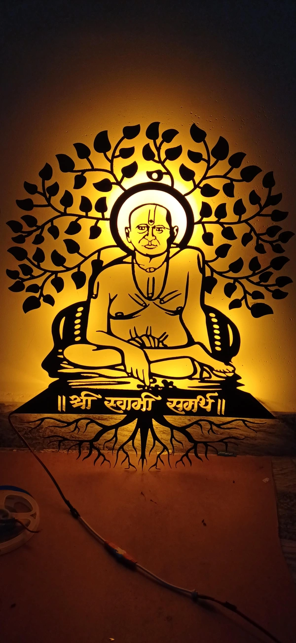 Swami Samarth And Tree Metal Wall Art (24x19 Inch)